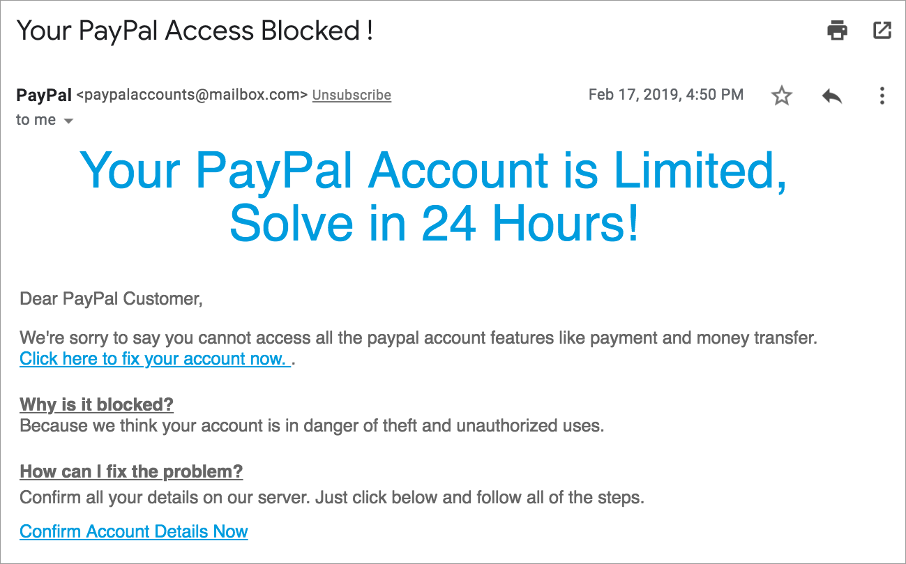 Sukčiavimo el. laiškuose dažnai prašoma atsakyti pateikiant asmeninę informaciją arba užpildyti formą svetainėje. Daugumai teisėtų bendrovių nereikia tikrinti asmeninės informacijos po pirminio paskyros sukūrimo.